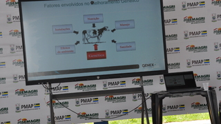 "Interpretação de Provas de Touros e sistemas de produção de gado de leite": Apresentada pelo Dr. João Rodrigo Arroelas Nabuko (Eng. Agrônomo com MBA em Economia, Gestão e Agronegócio), que atua como Consultor Técnico pela empresa Genex. A palestra focou em como o produtor pode utilizar a genética de touros provados para melhorar o rebanho e otimizar os sistemas de produção.
