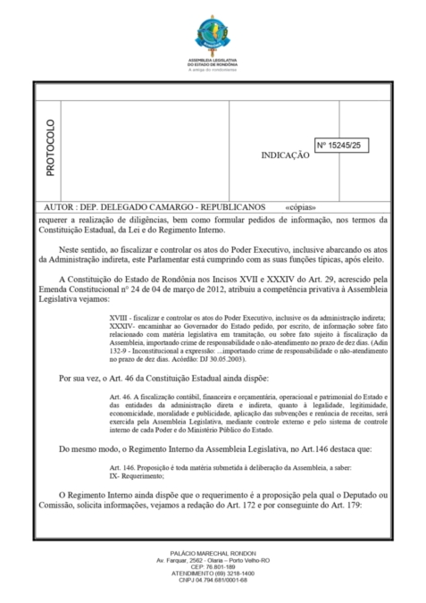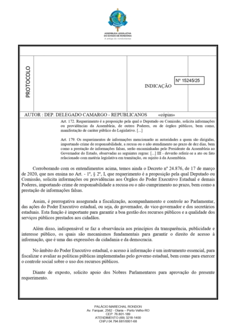 Esta iniciativa faz parte de uma série de ações que o deputado vem desenvolvendo ao longo de seu mandato na área da saúde. O deputado Camargo é autor do pedido de abertura de um CPI de Saúde (Comissão Parlamentar de Inquérito) na Assembleia Legislativa de Rondônia, com o objetivo de investigar a aplicação de recursos públicos, a gestão do sistema estadual de saúde, e as causas da crise enfrentada pela rede hospitalar em Rondônia.