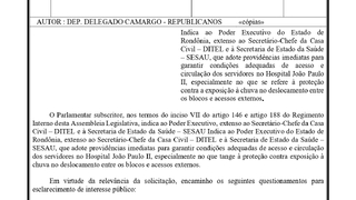 No pedido formal enviado ao Governo do Estado, à Casa Civil, e à Secretaria Estadual de Saúde (Sesau), o parlamentar denuncia a exposição de funcionários, pacientes, e seus acompanhantes à chuva durante o movimento entre os blocos hospitalares, bem como a água que entra em áreas internas como áreas de acolhimento e corredores. Segundo o documento, a situação compromete a dignidade dos profissionais, coloca o equipamento em risco, gera insegurança e prejudica diretamente a qualidade da assistência prestada à população.