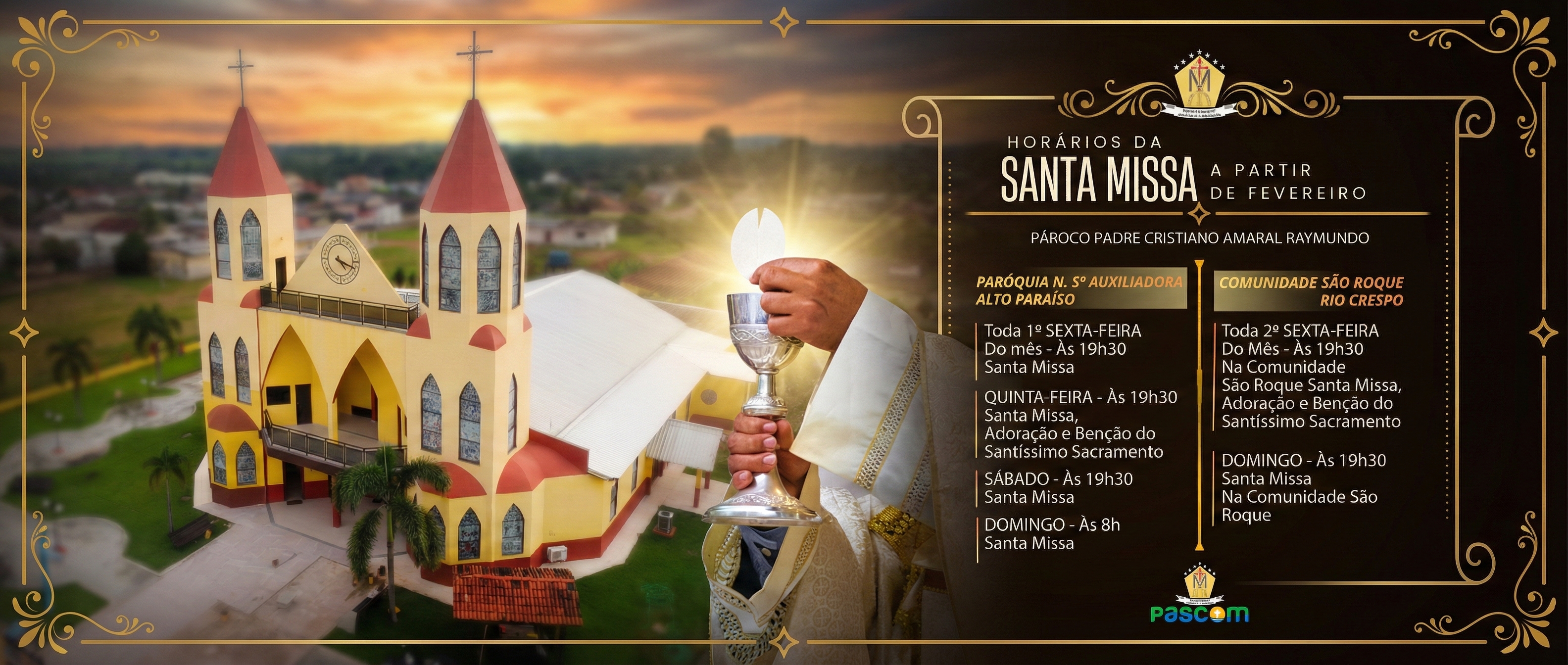 ALTO PARAÍSO, RO – A comunidade católica dos municípios de Alto Paraíso e Rio Crespo deve ficar atenta às mudanças na grade de celebrações eucarísticas. A Paróquia Nossa Senhora Auxiliadora divulgou, nesta semana, os novos dias e horários para as Santas Missas, que entrarão em vigor a partir do início de fevereiro.