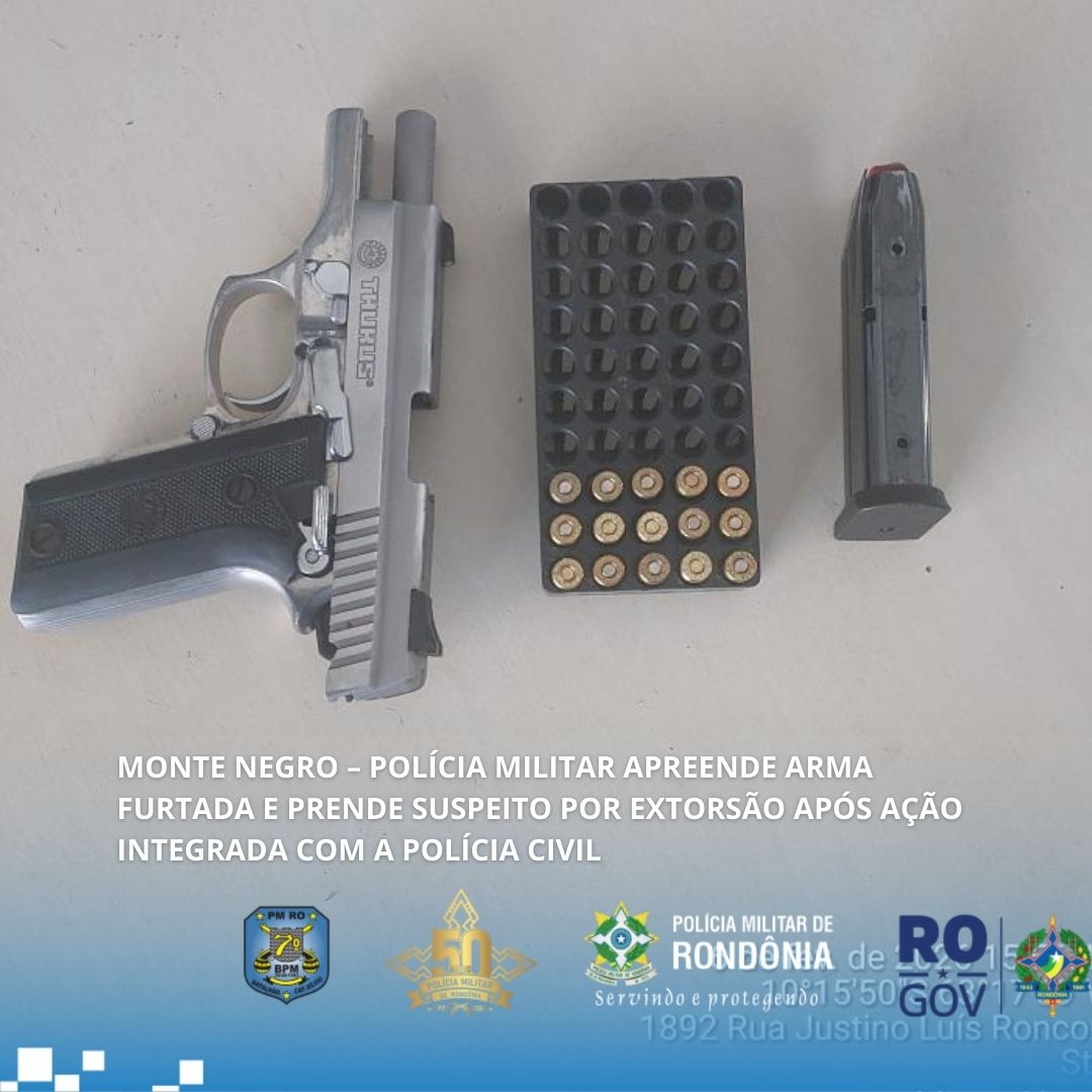 POLÍCIA MILITAR APREENDE ARMA FURTADA E PRENDE SUSPEITO POR EXTORSÃO APÓS AÇÃO INTEGRADA COM A POLÍCIA CIVIL