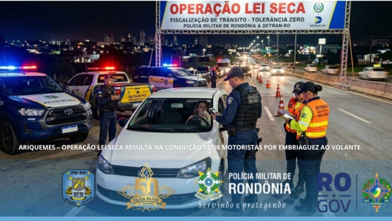 No dia 27 de fevereiro de 2026, o da 7º Batalhão de Polícia Militar realizou mais uma etapa da operação Lei Seca no município de Ariquemes, em ação integrada com a Circunscrição de Trânsito de Ariquemes - CIRETRAN. A fiscalização foi orientada pela Diretoria de Fiscalização de Trânsito do DETRAN. O foco da operação está na prevenção de sinistros e na repressão à condutores de veículo automotor que trafegam nas ruas da cidade sob efeito de álcool. A ação é mais uma das estratégias do combate à violência no trânsito do município, onde já foram autuados desde janeiro deste ano 47 motoristas que conduziam veículo sob efeito de bebidas alcoólicas.